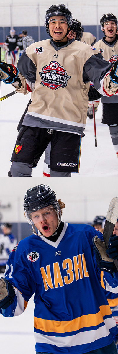 Yellow 7 @ Black 3 - Team NA3HL Yellow kicked off day 2 of the NA3HL Top Prospects tournament right where they left off on Monday, defeating team NA3HL Black by a final of 7-3 to finish undefeated. In the first, it was all team Yellow, as goals from Louisiana forward Brody Neish, El Paso forward Joseph Gutierrez, and fellow Louisiana defenseman Roman Vitolo staked the Yellow team to a 3 goal lead after 20 minutes, and they would not look back. In the second, Charles Blake and Dantae Hunziker would each tally goals to give the Yellow squad a 5 goal lead, but the Black team was not going to go down without a fight. Ashton Collings would open the scoring for team Black, and just over 2 minutes later, Caleb Waller would score to get the Black team back within 3. With just 56 seconds left, Caleb Waller would score to get the Black squad back within a pair, but that would be the closest they would get on the day, as 3rd period goals from Ashton Morin and Issa Murakami would seal the deal for the Yellow squad. For the Black squad, New Hampshire goaltender Charlie Donoghue would earn the start again, and make 19 saves on the day. In net for the Yellow squad, Austin netminder Gavin Morris would earn the start and make seven saves, then he made way for Atlanta netminder Robert Pogosyan, and Pogosyan would finish the day off with 10 saves.