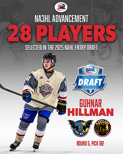 The North American 3 Hockey League (NA3HL) is proud to highlight continued success in player advancement, further strengthening its essential role within the North American Hockey League (NAHL) family of leagues. Following the completion of the 2025 NAHL Entry Draft on Wednesday, June 11th, the NA3HL once again demonstrated why its relationship with the NAHL is so crucial for players looking to take the next step in their hockey careers.