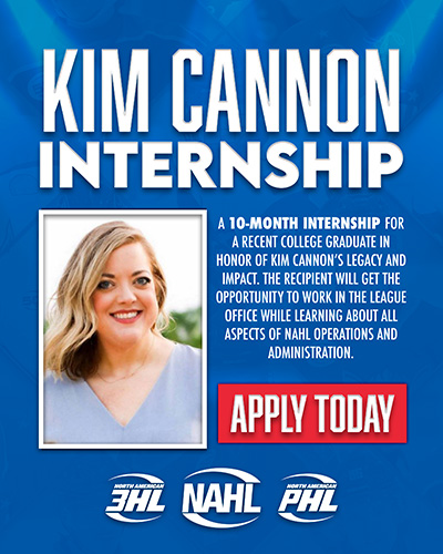 “The Kim Cannon Internship is a way for the NAHL to provide an opportunity annually to someone who shares the same type of passion and drive that Kim displayed when she was working within the NAHL,” said NAHL Commissioner and President Mark Frankenfeld. “The Kim Cannon Intern will gain valuable experience working with our family of leagues that they can then use as a stepping stone and building block to continue their careers.”